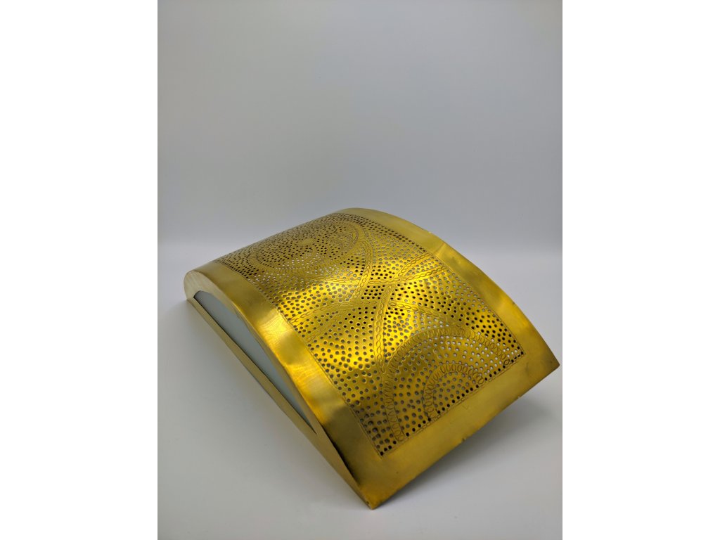 Zářivá mosaz, ručně tvarovaná do elegantních tvarů, zdobí stínidlo složitými, propustnými vzory, které jsou charakteristické pro marocký design. Každý detail vypráví příběh o tradičním umění a zručnosti marrákešských řemeslníků. Kromě krásné mosazi stínidlo doplňují mléčná skla na bocích, která jemně rozptylují světlo a vytvářejí tak měkké a hřejivé osvětlení prostoru.